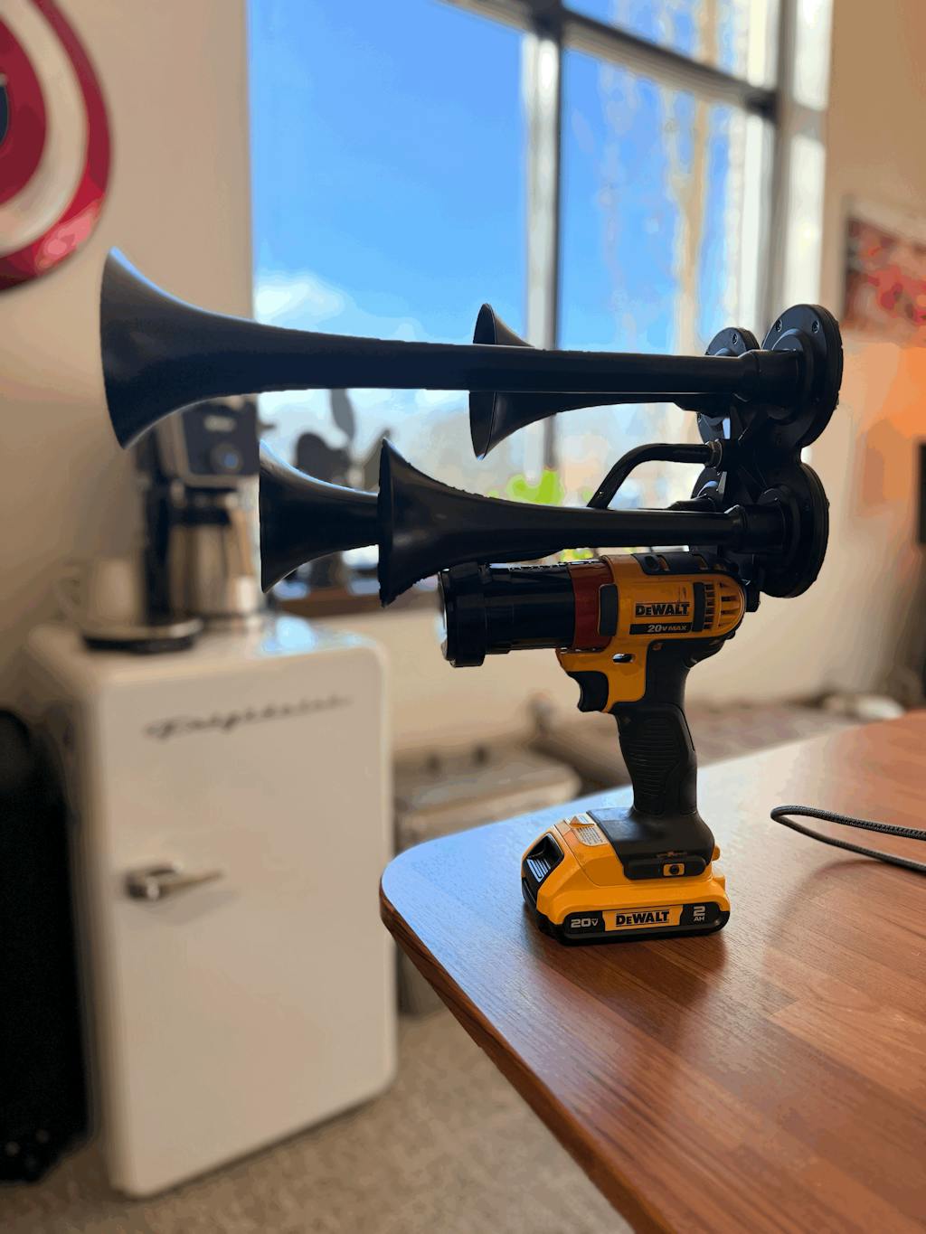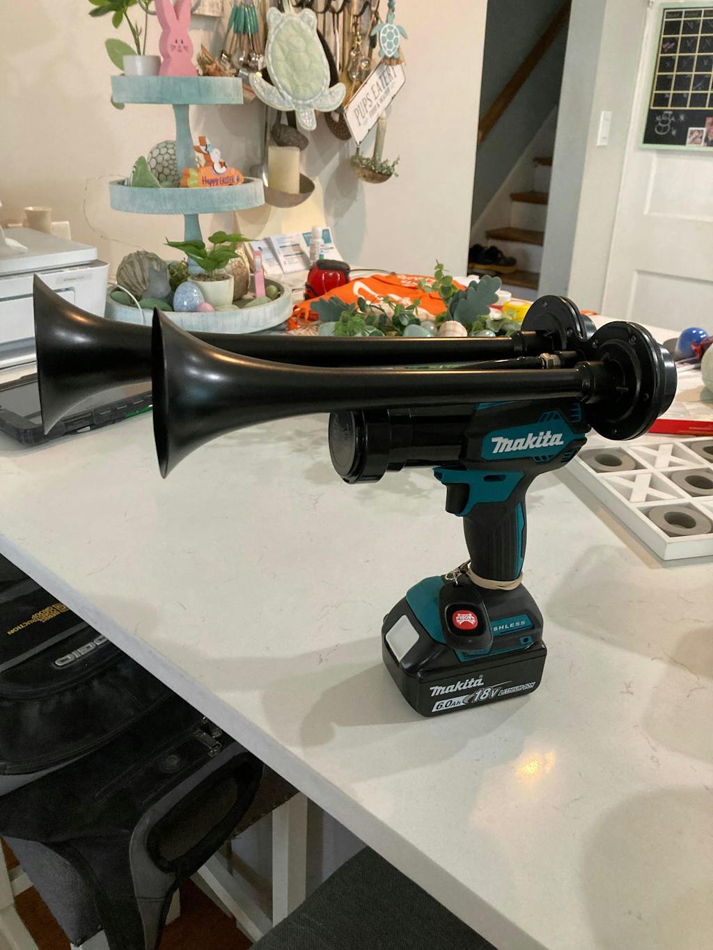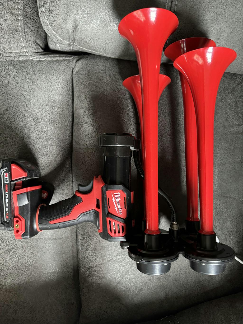 I went my sons best friend's graduation on a Monday night and we sat at the top of the bleachers and around me I heard everyone cheering, yelling names and just being loud for theri son/daughter who was graduating. Some people had small handheld air horns and others had the fireworks/confetti things that make a pop and confetti comes out. My sons graduation was that same week but Friday night, and I thought to my self how is he gonna hear me over everyone else. I looked at my wife and said hey we need to be the loudest people there so our son can hear us. While standing at the top of the bleachers during the Monday night graduation I ordered the horn gun. I was stoked!!! I looked at my wife and said I did it i just ordered the horn lol. Then Friday night rolls around and im just causally walking through the bleachers with this giant 10AH Milwaukee battery and horn gun.