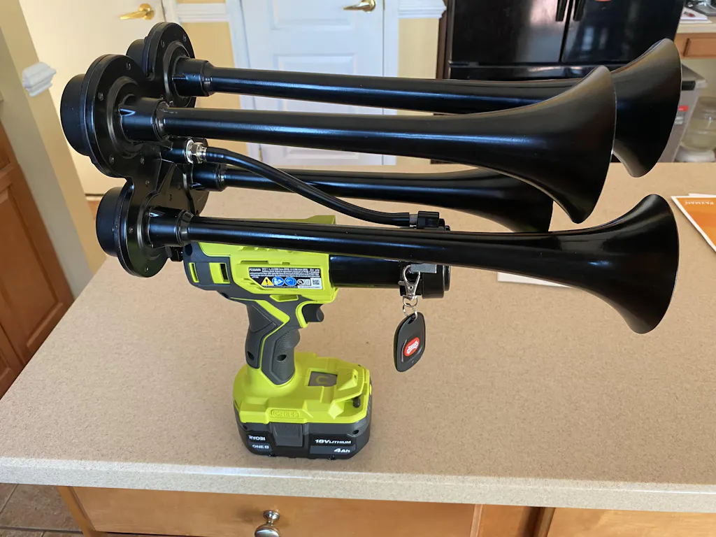Pistola de bocina de tren Ryobi con control remoto: potencia portátil de 140 dB