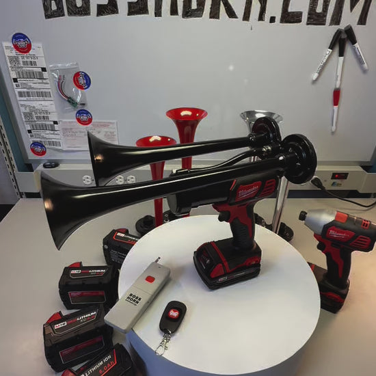 Unbox and unleash the power! Your BossHorn comes fully assembled with a high-output air compressor and a wireless remote for easy activation. Inside, you’ll find an instruction manual and, if selected, a battery and charger. No wiring, no hassle—just pure, powerful sound!