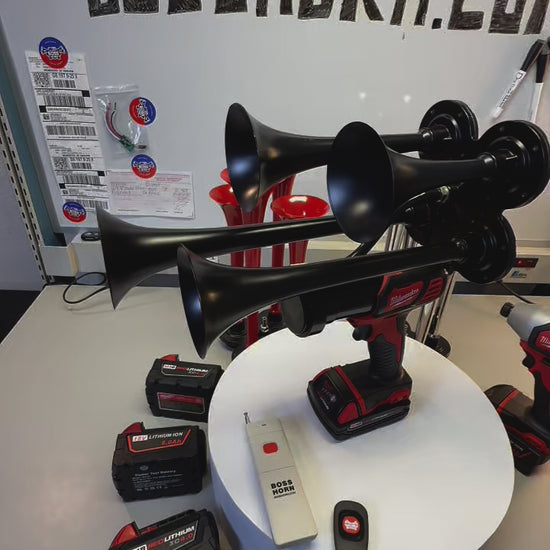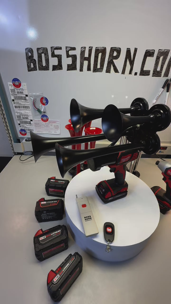 Unbox and let the power roar! Your BossHorn comes fully assembled with a high-powered air compressor and a wireless remote control for easy activation. Inside, you’ll find an instruction manual and, if selected, a battery and charger. No wiring, no hassle—just pure, thunderous sound!
